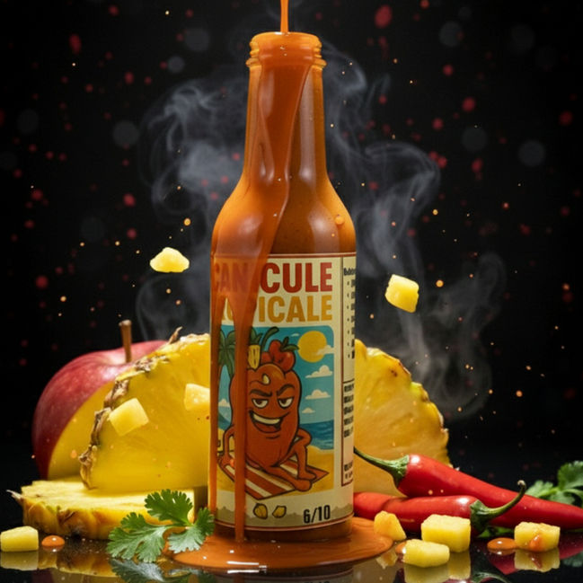 Un mélange juteux qui t'embrasse.. avant de te gifler. Ananas, pommes, Habanero : le trio qui te fait transpirer de regret.